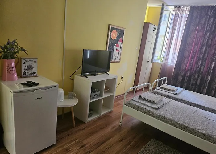 Для зручності гостей в апартаментах Стая за двама в град Бургас є зручності для самостійного приготування їжі, такі як електрочайник і холодильник. Гості, які зупиняються в апартаментах, можуть насолодитися зручністю чайника. Margi's Kitchen, як обідній варіант, знаходиться на відстані 5 хвилин пішки. Аеропорт Бургас розміщений за 15 хв їзди, а автобусна зупинка Gladston - на відстані 5 хвилин ходьби від апартаментів Стая за двама в град Бургас. У цьому помешканні є тераса.